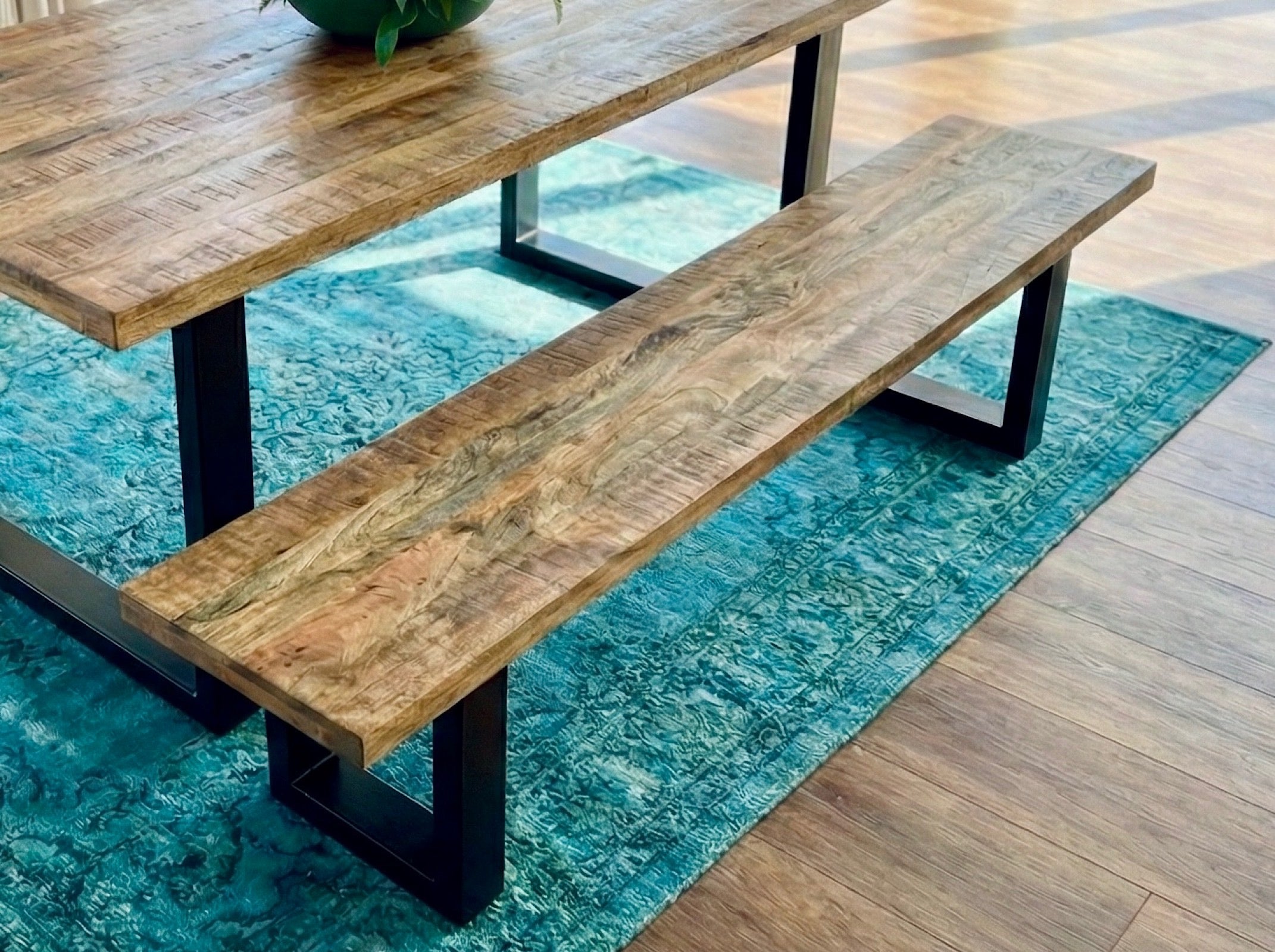 • Matériaux: Bois de manguier laminé, pattes robustes en métal