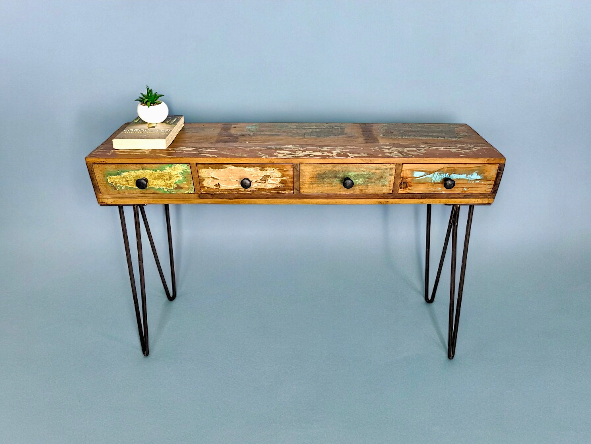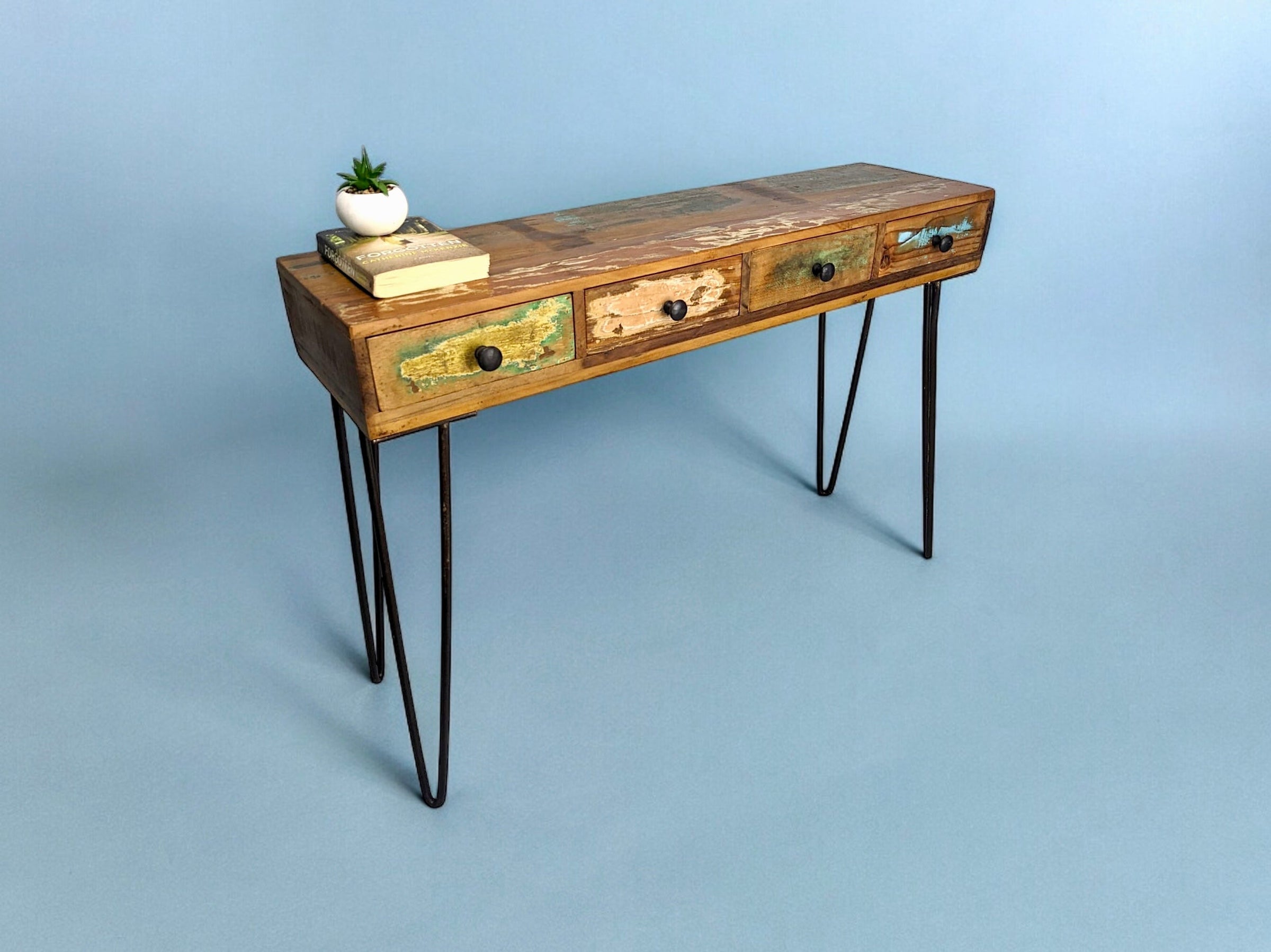 Console Baloo en métal et bois recyclé. Les couleurs peuvent varier d'un modele à l'autre, vous recevrez des photos afin de faire votre choix.