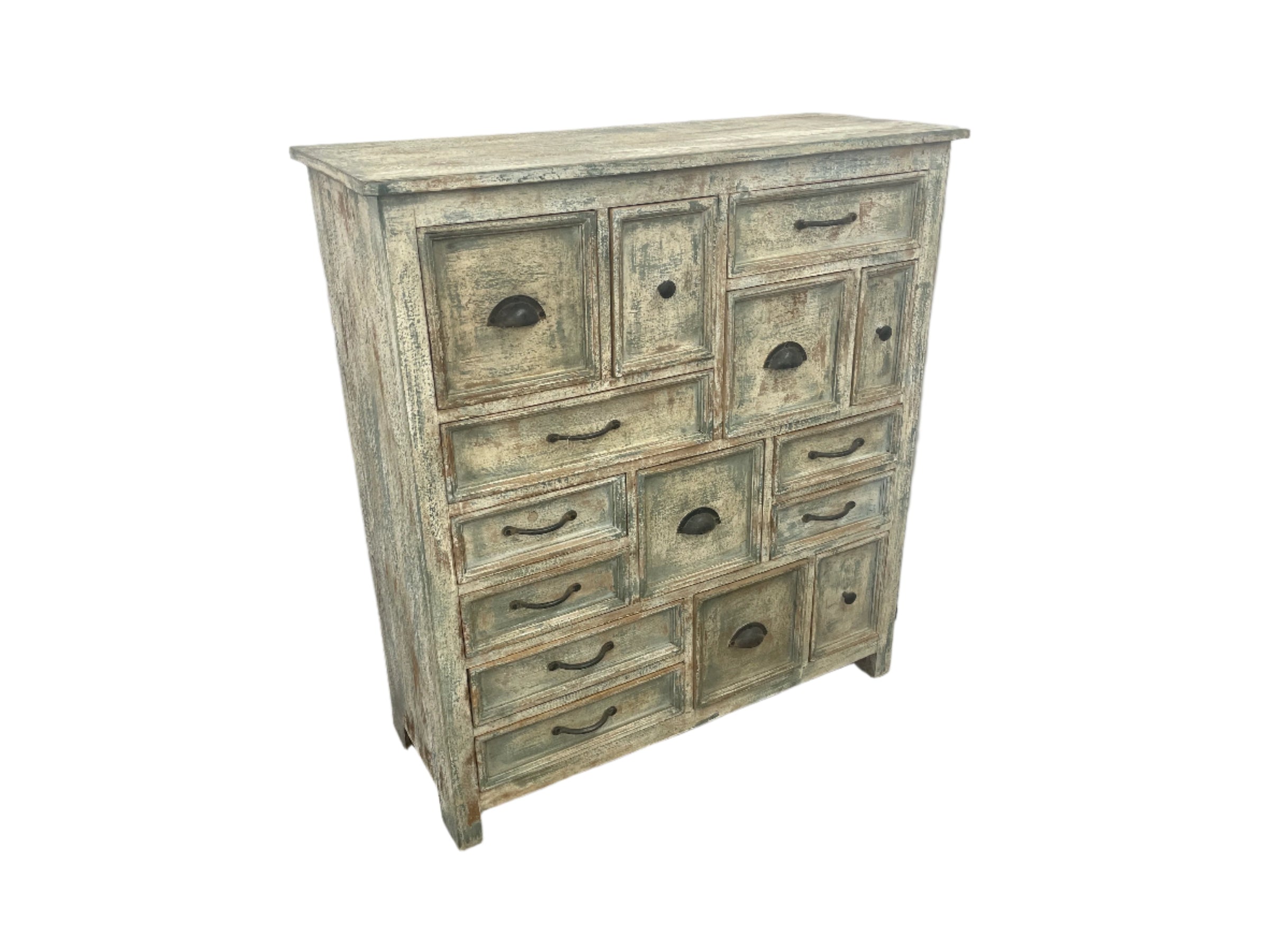 La commode Selina allie charme rustique et fonctionnalité exceptionnelle. Avec ses 15 tiroirs, cette commode en bois de manguier recyclé offre une solution de rangement versatile, tout en apportant une touche d'exotisme à votre intérieur grâce à son fini verni qui met en valeur le grain naturel du bois.