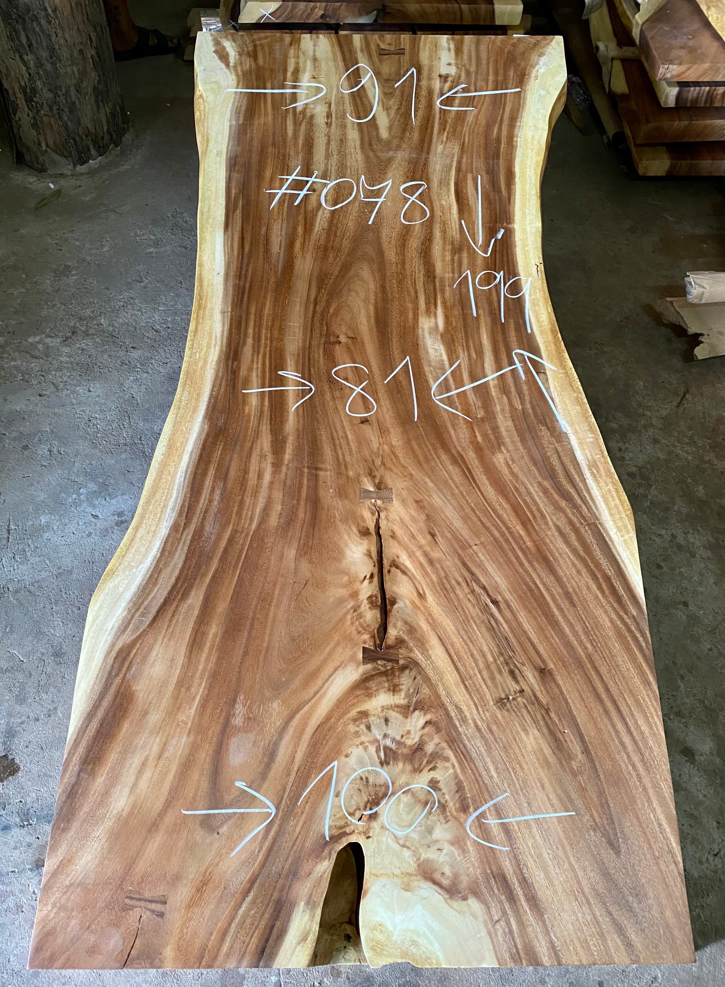 Saman ou "Arbre à pluie", ce grand arbre à la particularité de pousser très rapidement et ainsi d'être récolté et remplacé par de nouveaux. Pour cette raison, de nombreuses plantations de suar ont vu le jour en Asie et en particulier en Thailande d'où proviennent nos slabs. C'est aussi pour ses diverses qualités, son grain fin, ses traits de croissance et ses beaux dégradés qu'il se prête magnifiquement au travail de plateaux de table live Edge.