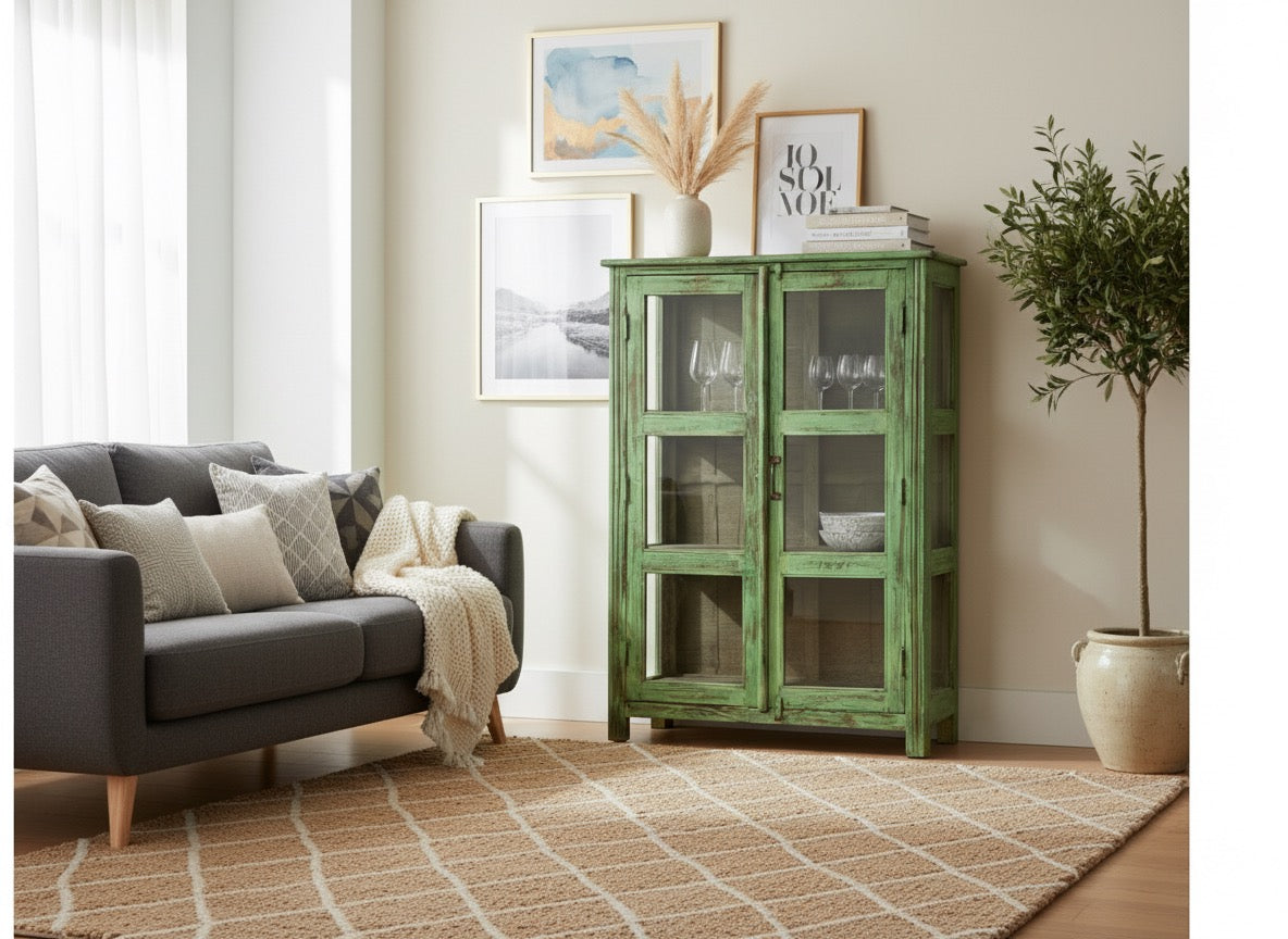 Ce cabinet antique en bois de teck recyclé ajoute une touche de charme rustique et vintage à votre intérieur. Parfait pour le rangement et l'exposition, il combine fonctionnalité et esthétique avec ses matériaux durables.