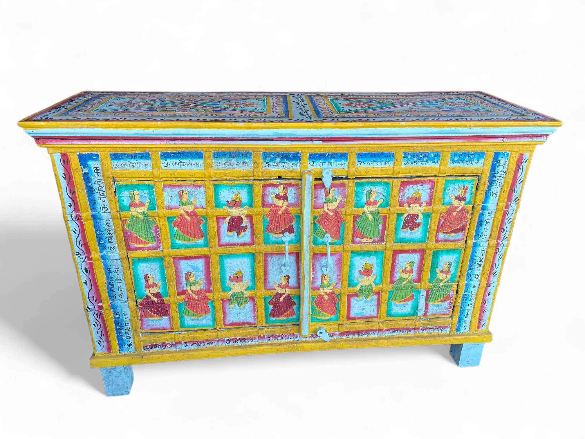 Handcrafted sideboard made of recycled wood, hand-painted in bright and vivid tones. A unique piece that brings a touch of color and originality to your decor.