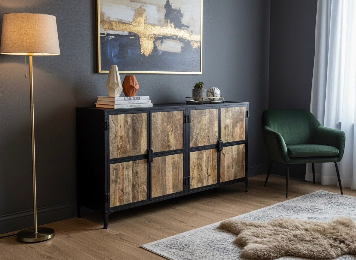 Mango wood and metal buffet