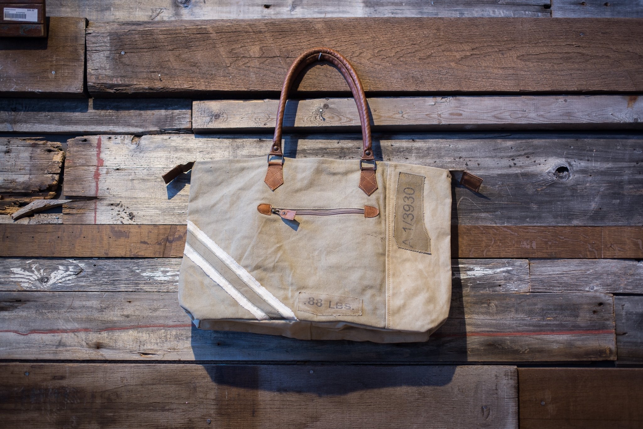This canvas and leather bag combines robustness and vintage style, ideal for everyday use. Its large capacity makes it perfect for carrying your essentials elegantly.
