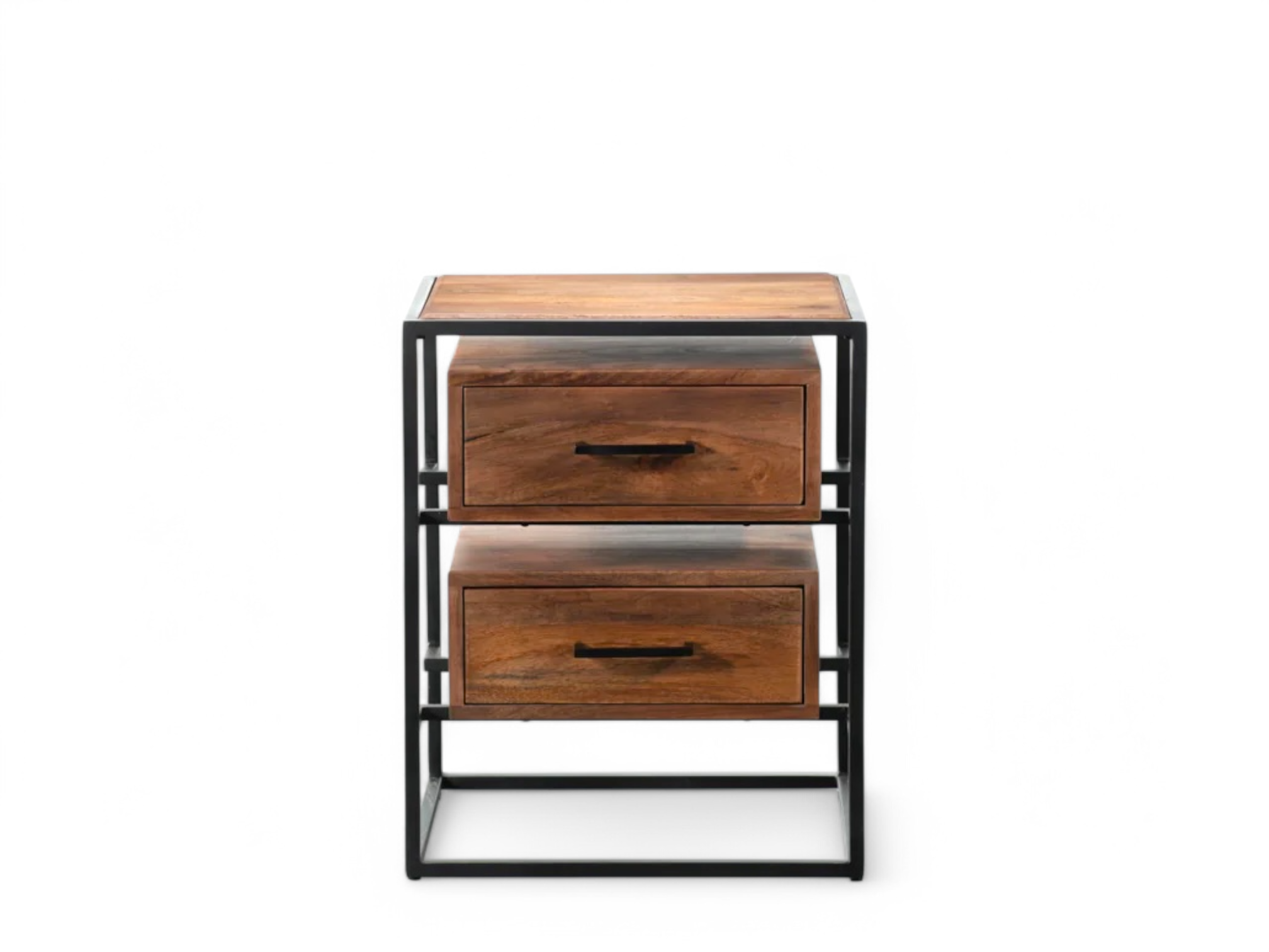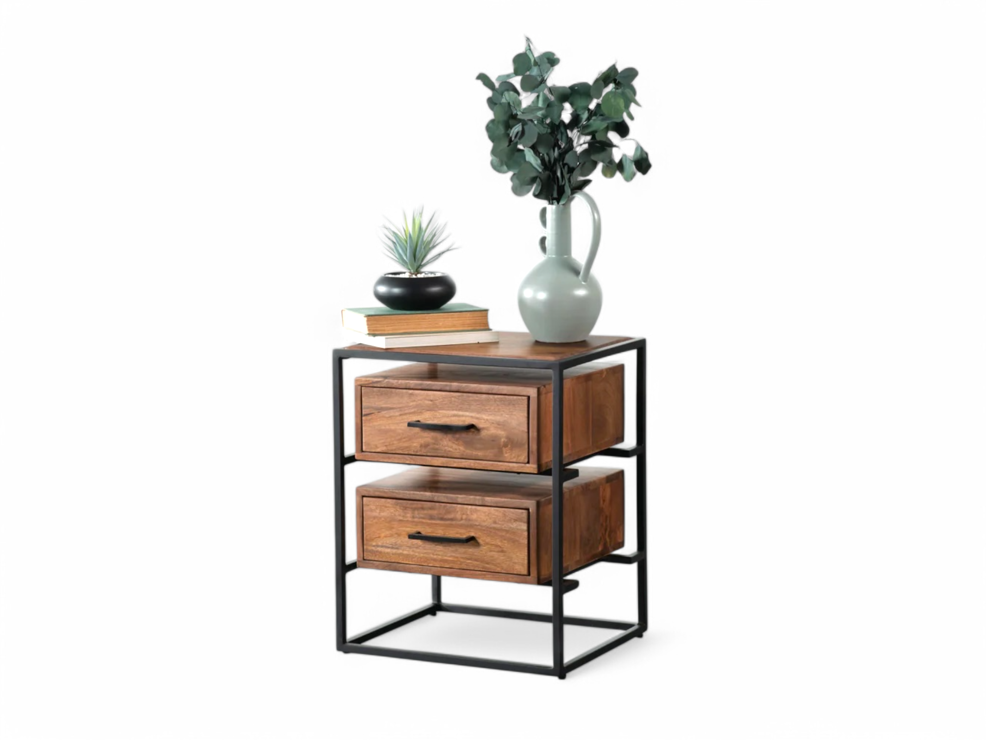 The nightstand Bradson combines a modern design and sturdiness with its mango wood and metal frame. It is the perfect addition to your interior, blending functionality, aesthetics, and durability. Designed to last while adding character to your space, it will become a must-have in your decor.