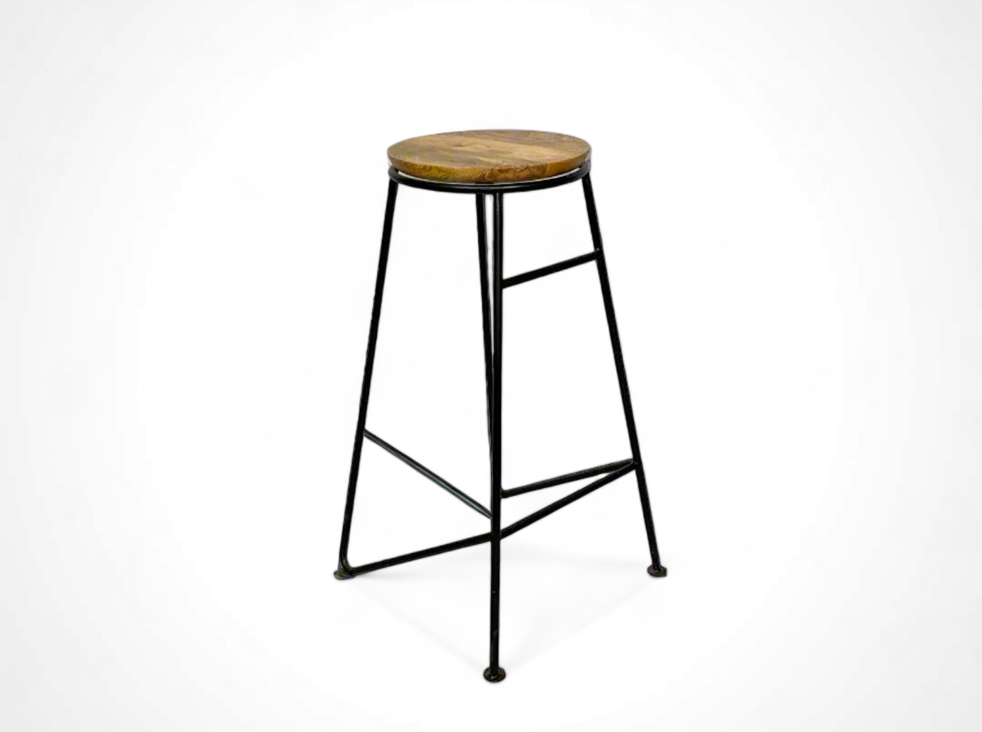 This mango wood and metal stool combines a natural aesthetic with an industrial touch. The matte black paint finish and varnished natural wood add a raw sophistication, ideal for any modern space.